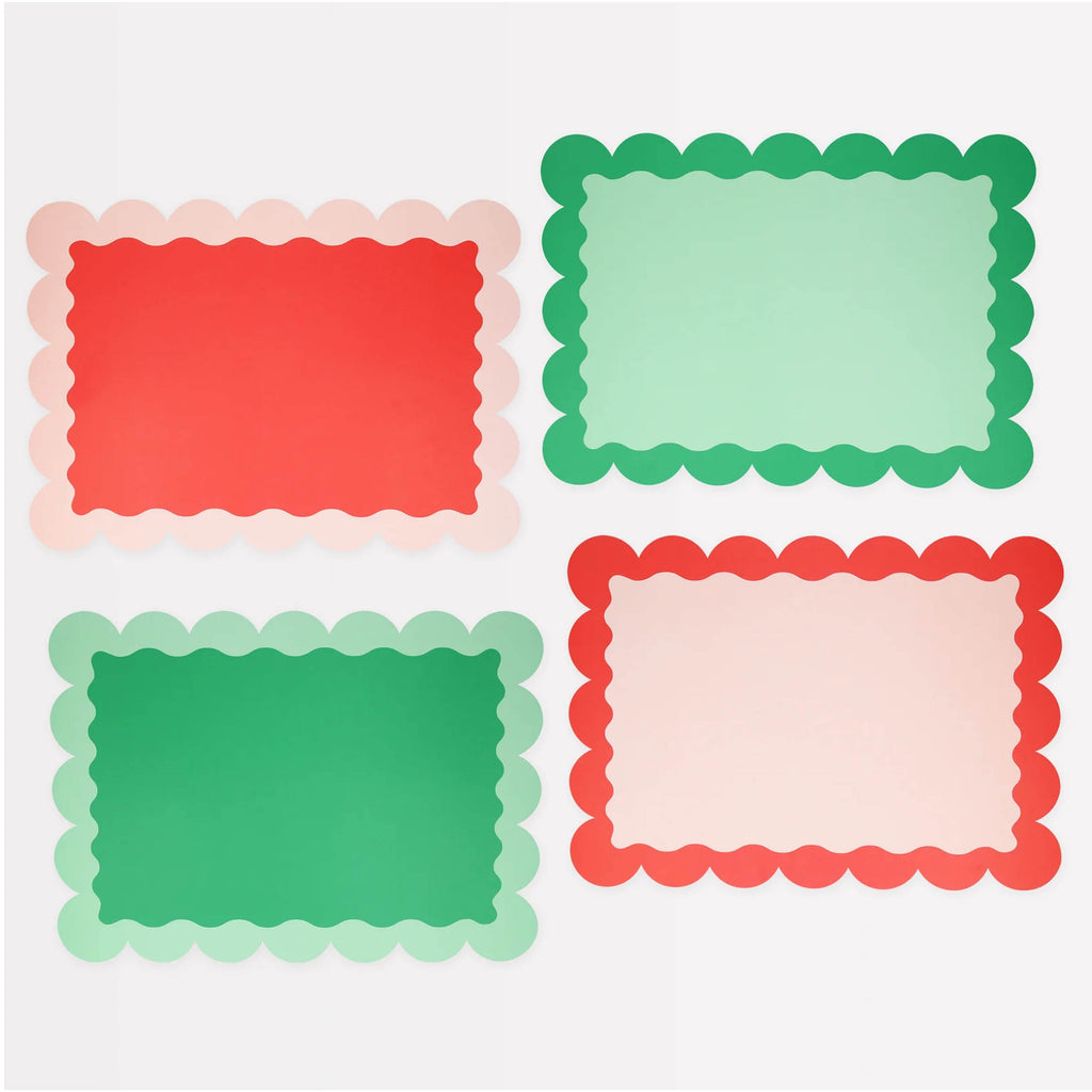 Give a modern twist to your Christmas table with our mix of classic red and green placemats teamed with a pop of pink. These duo tone paper placemats, with a sensational scalloped edge, instantly add style.