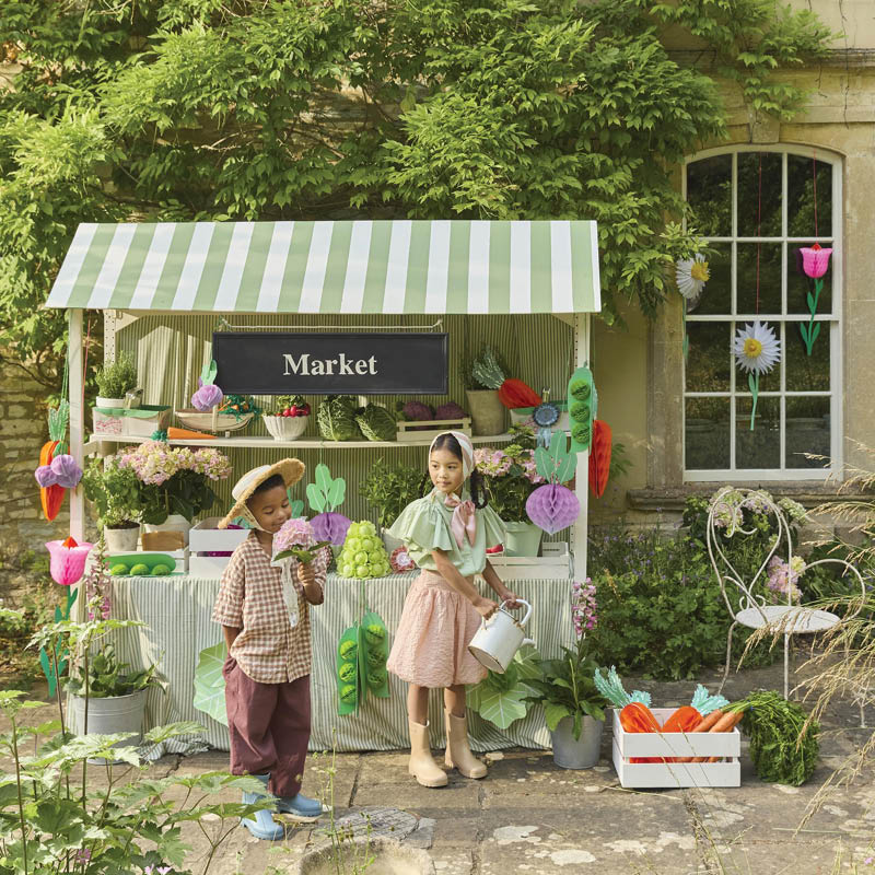 Celebrate the contemporary charm of vegetable inspired decor with this joyful set of giant honeycomb decorations. Bursting with color and character, it includes three carrots, two beetroots, two cabbages, two pea pods and a bunch of radishes. They're made from paper honeycomb that is secured neatly with hidden magnets. Each piece comes pre-tied with green twine for easy hanging, style them in the porch, garden or create an unforgettable moment in your home. Guaranteed to bring springtime smiles from guests of all ages. Playful statement decorations to be treasured and reused year after year.