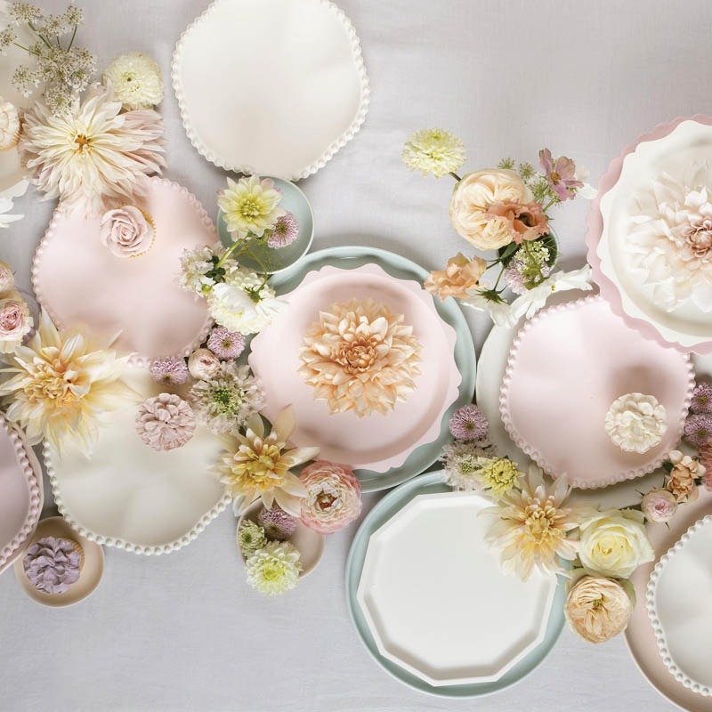 These designers have created these compostable* plates with elegant shapes and styles, inspired by ceramics and porcelain, to make any meal look special. The combination of a classic cream color and dot edge will look wonderful at a bridal shower, baby shower, afternoon tea or garden party.