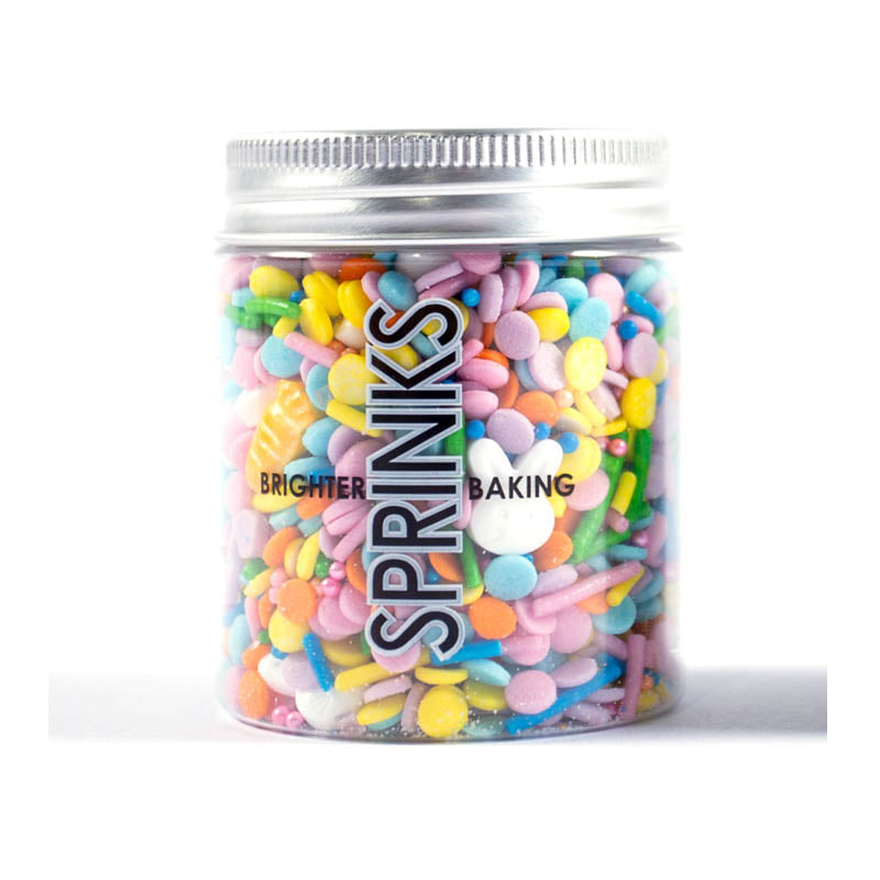 Hop into Easter fun with Sprinks Run Run Rabbit Mix! This delightful sprinkle medley is packed with adorable rabbit and carrot shapes, classic jimmies, and shimmering pearls—bringing a burst of festive charm to your bakes. Perfect for decorating cupcakes, cookies, cakes, and desserts, this mix adds a playful touch to all your Easter creations.
