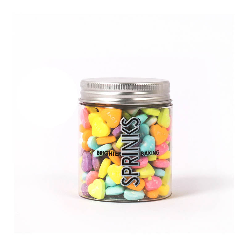 Add a touch of romance to your baking with Sprinks My Sweetest Heart Sprinkles! These beautifully crafted love heart sprinkles feature KISS and LOVE embossed on either side, making them a delightful decoration for cakes, cupcakes, cookies, and more. Whether used as stand-alone toppers or combined with other sprinkles, they’re sure to bring a heartfelt charm to your creations.