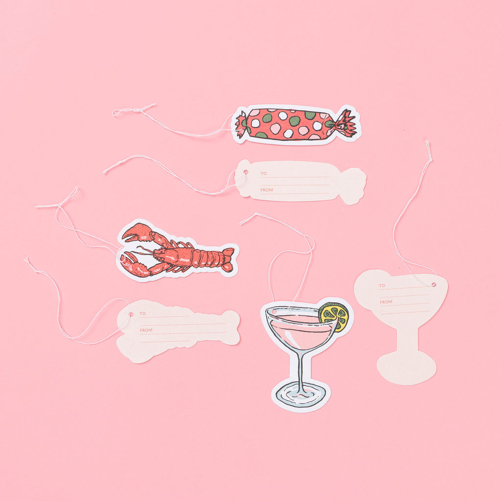 Cute kiss-cut gift tags. Set consists of 6 x 3 artworks, printed with original illustrations and looped with black cord.